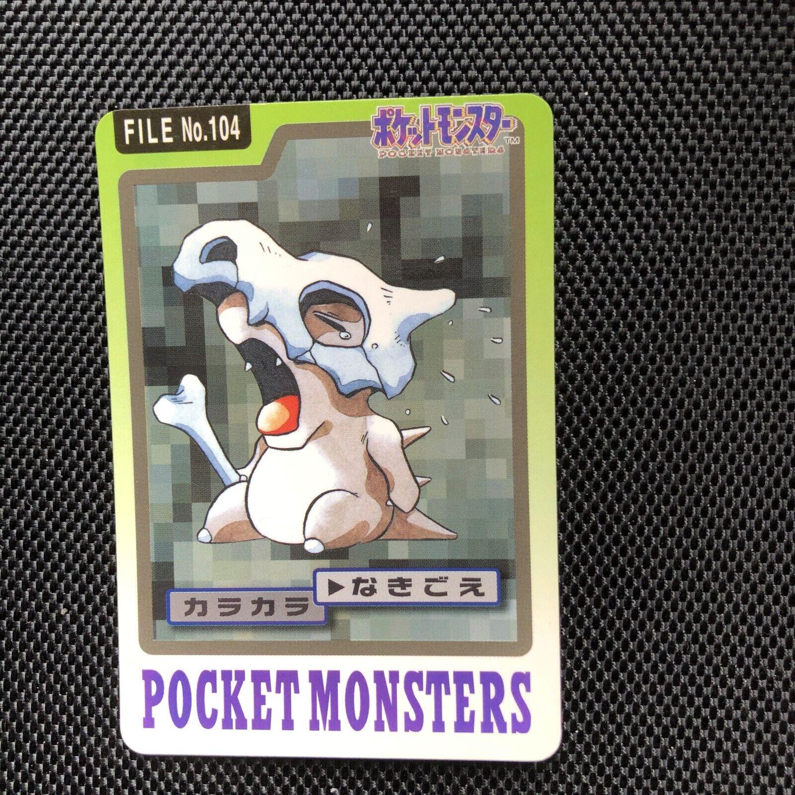 Cubone (#104) is a Ground-type “Lone Helmet Pokémon” introduced in Generation I. It is known for its skeletal appearance and wearing a skull as a mask, which it often mourns for its lost family. Its abilities include Lightening-Quick and Rock Head, and it evolves into Marowak. Cubone typically inhabits rocky or sandy areas, often wandering alone at night. Curiously, Cubone’s distinctive skull mask is said to contain the partial memories of its ancestors.